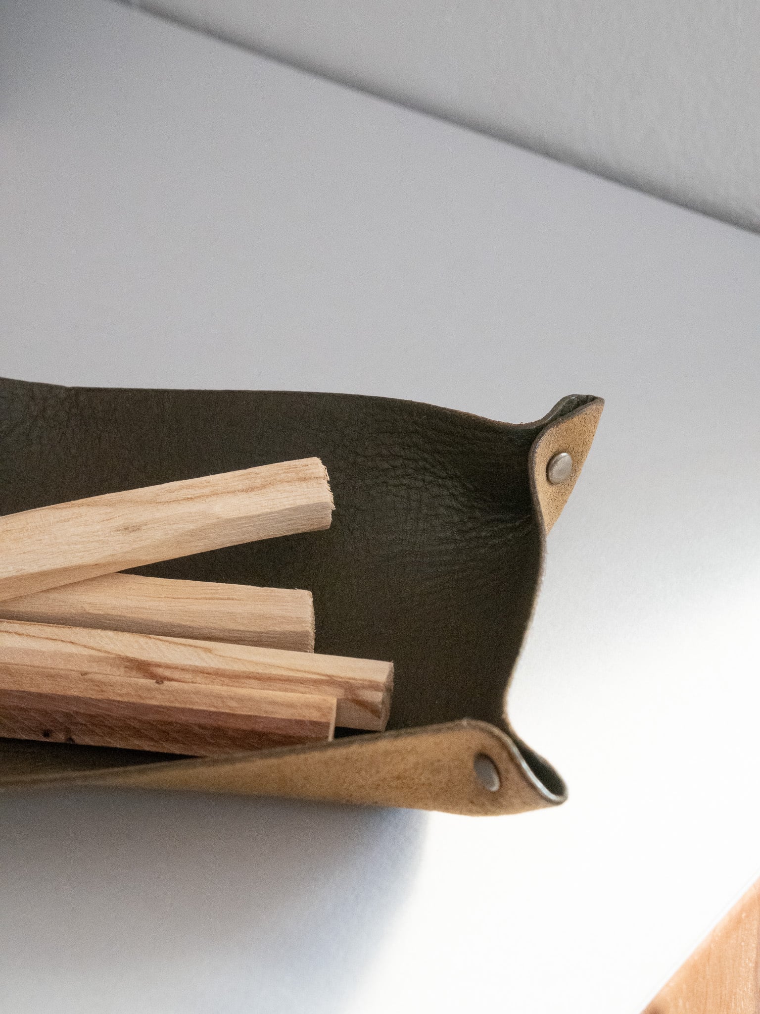 製造や廃棄時に環境への負荷が少ない「植物タンニンなめし革」を使用したレザートレイ。レザー作家さんが一つ一つ丁寧に作られたトレイは、手触りがとてもよくジュエリーや車のキーが傷つく心配もありません。丁寧な手仕事と、時とともに変化していく革の表情をお楽しみください。